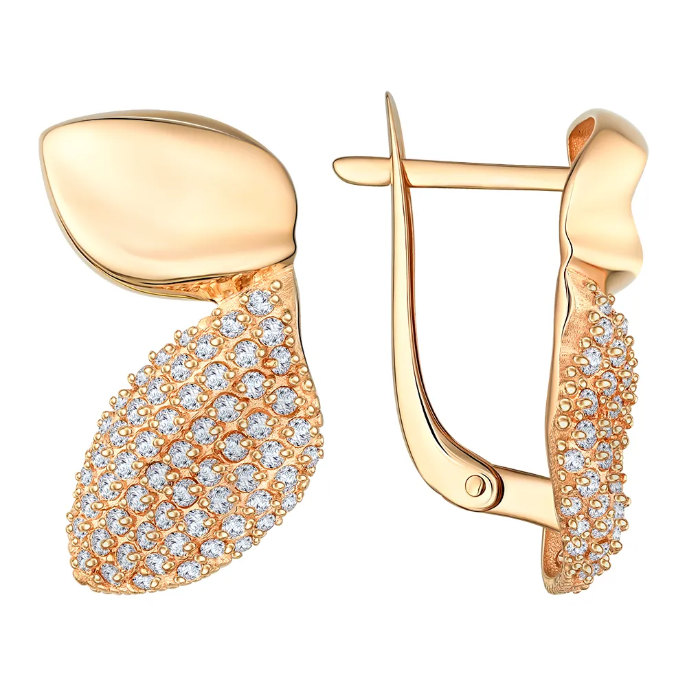 Серьги из красного золота с фианитами