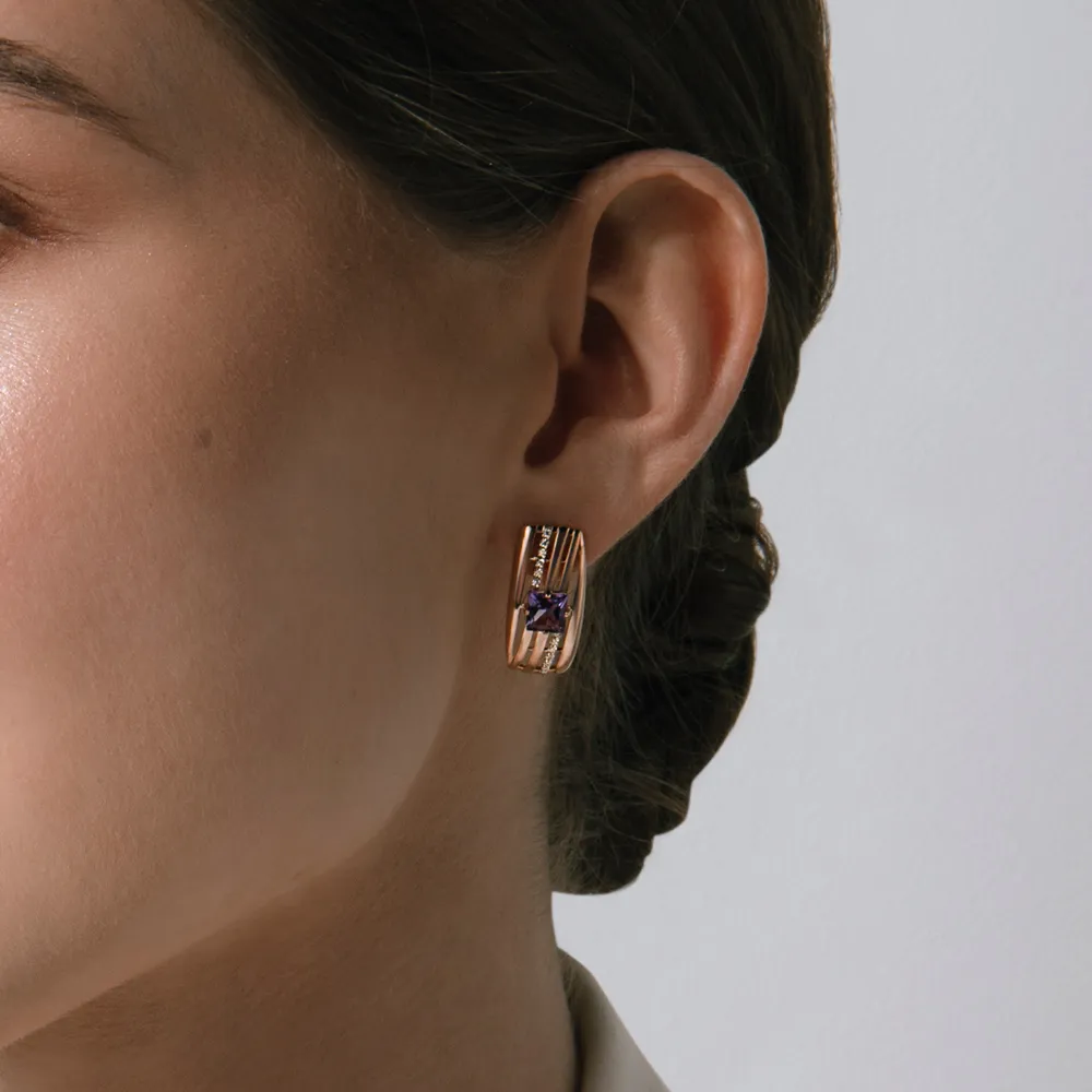 Серьги из красного золота с аметистами