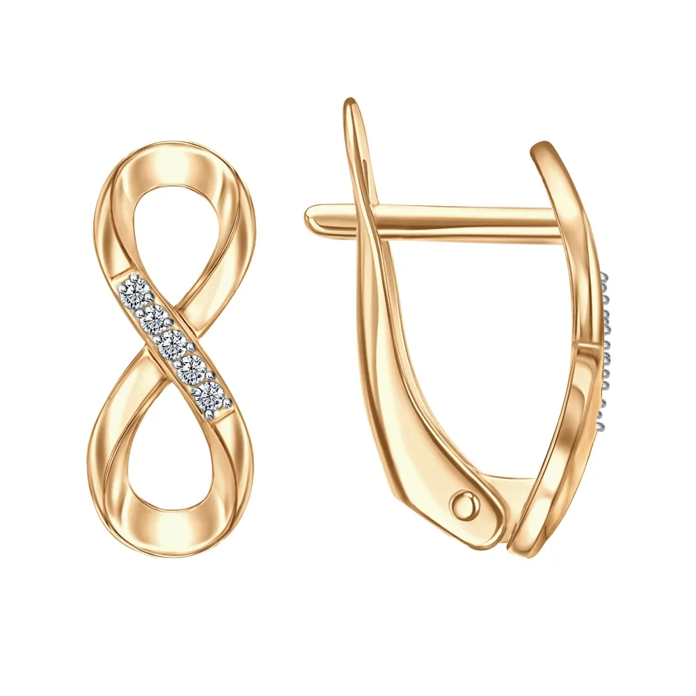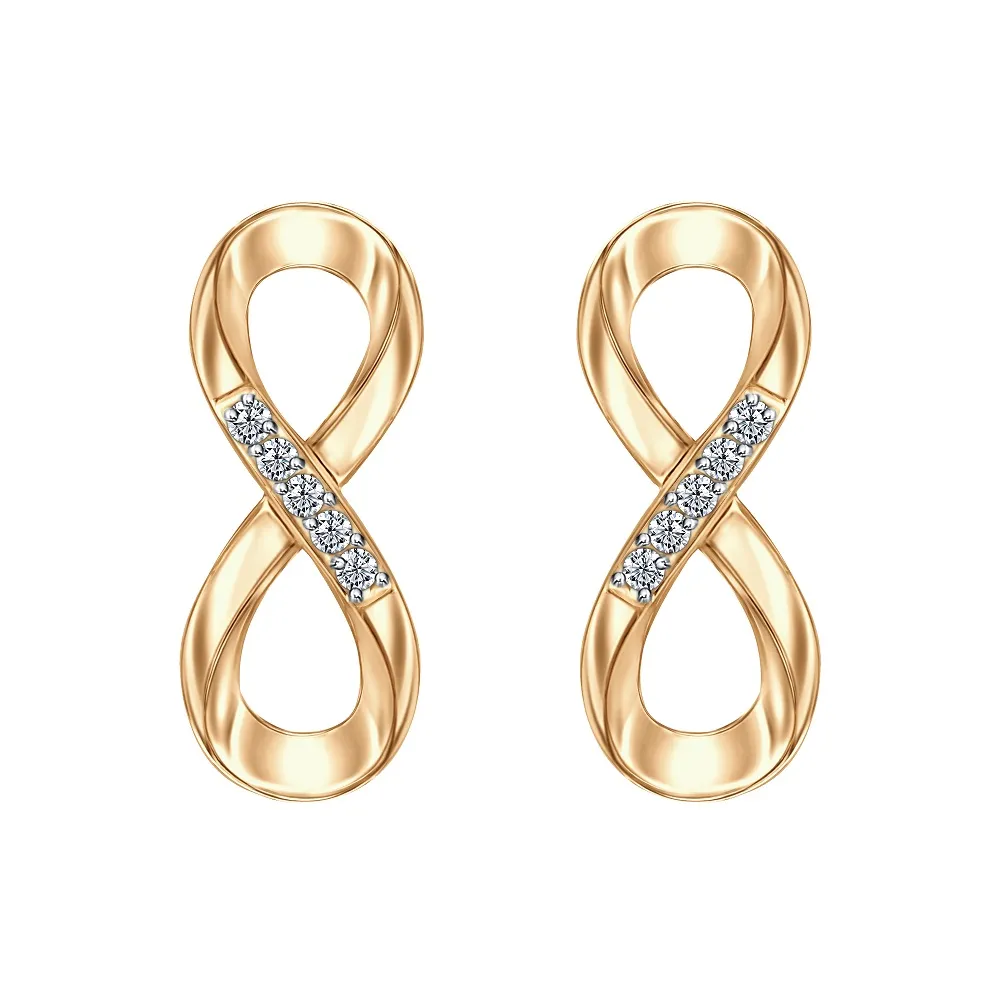 Серьги пусеты из красного золота с фианитами 024842-1102