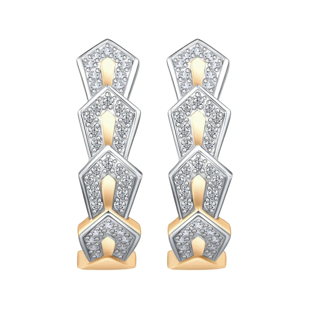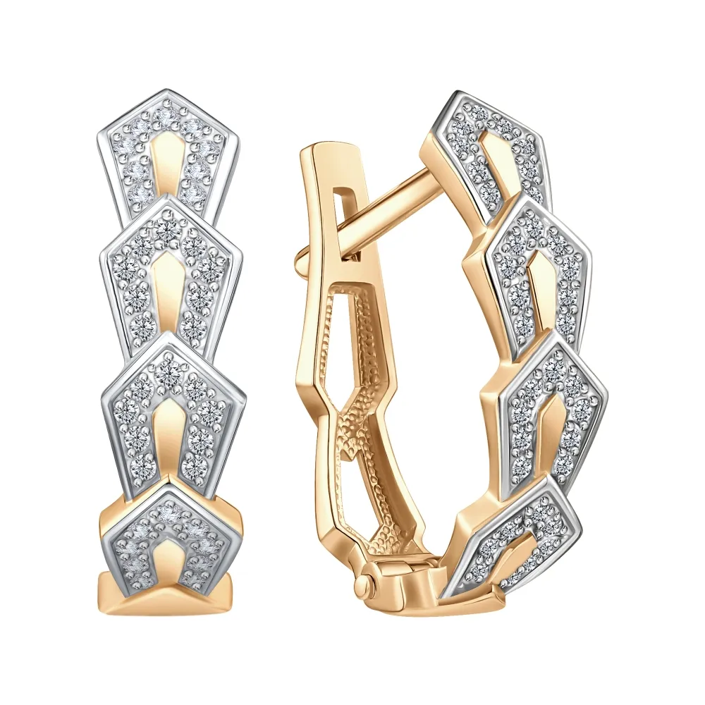 Серьги пусеты из красного золота с фианитами 024842-1102