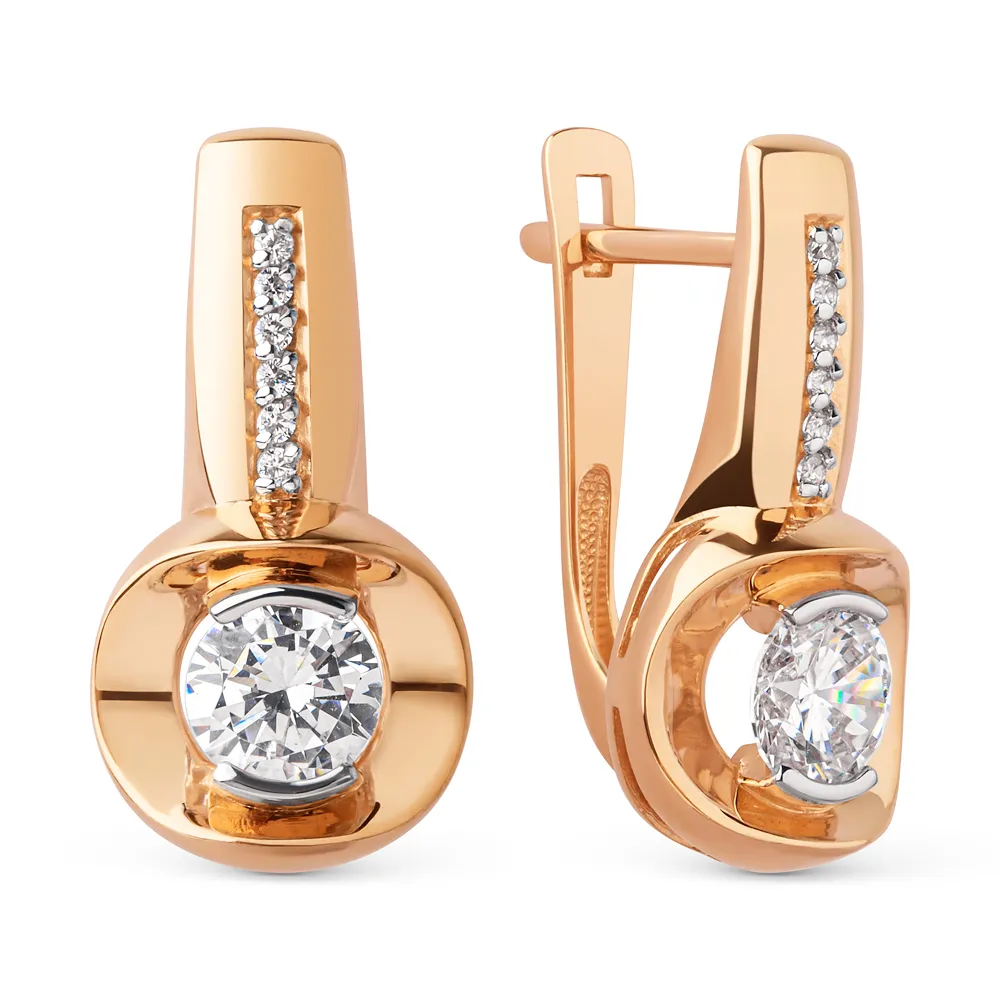 Серьги из красного золота с фианитами