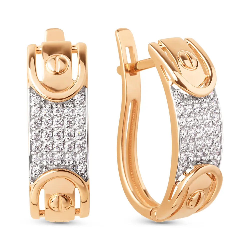 Серьги пусеты из красного золота с фианитами 024842-1102