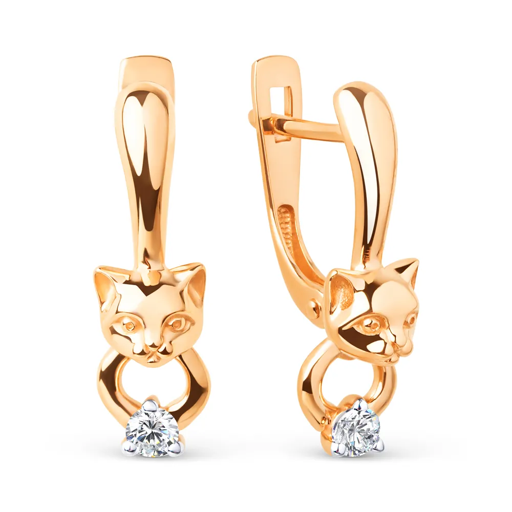 Серьги из красного золота с фианитами