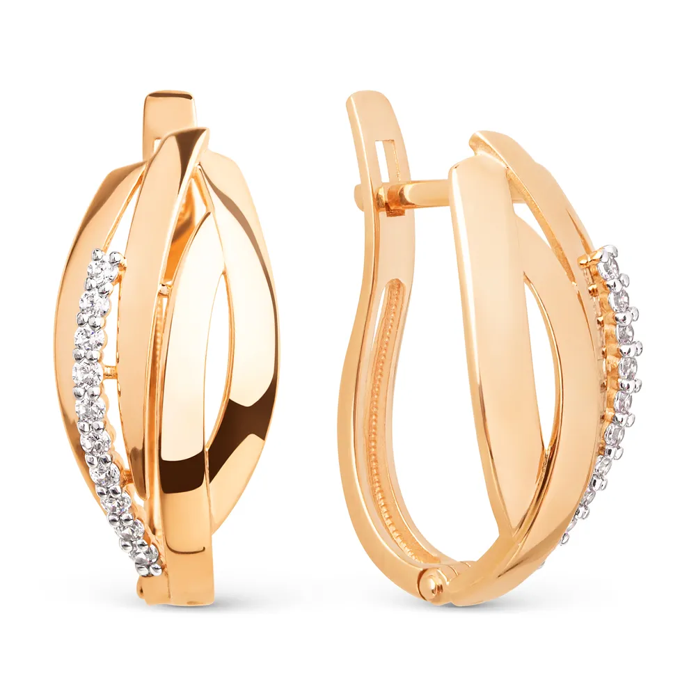 Серьги из красного золота с фианитами