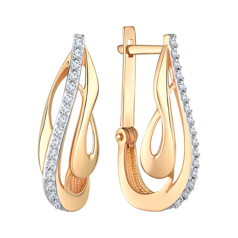 Серьги из красного золота с фианитами