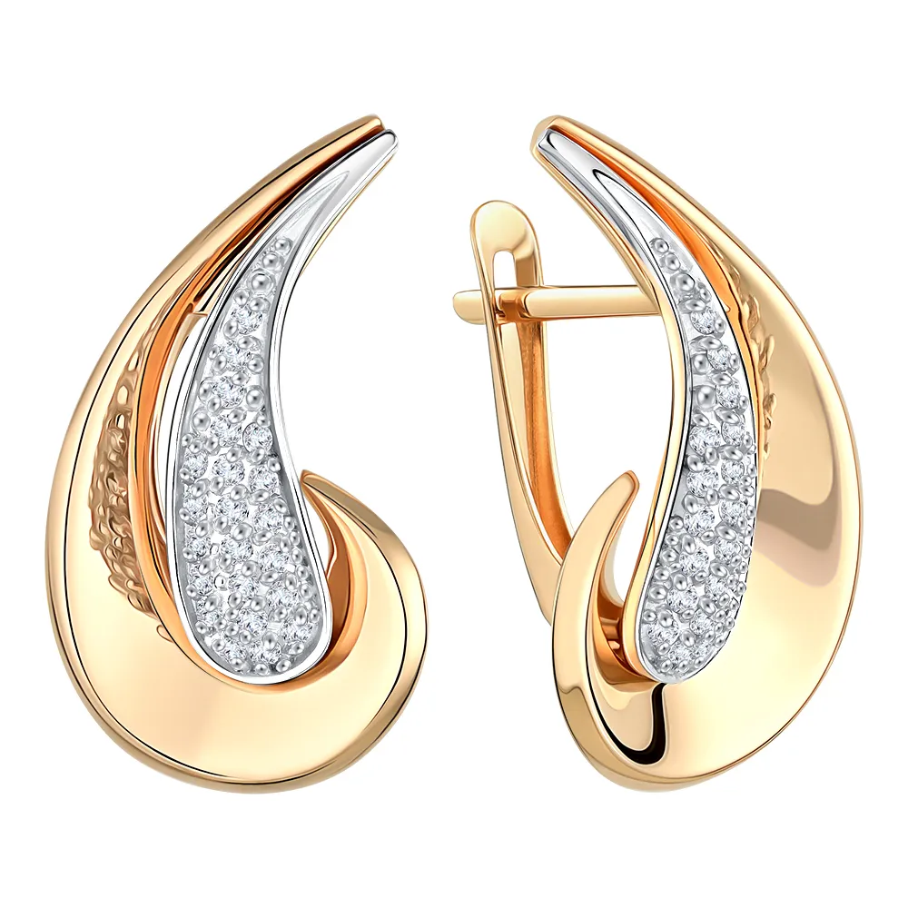 Серьги из красного золота с фианитами