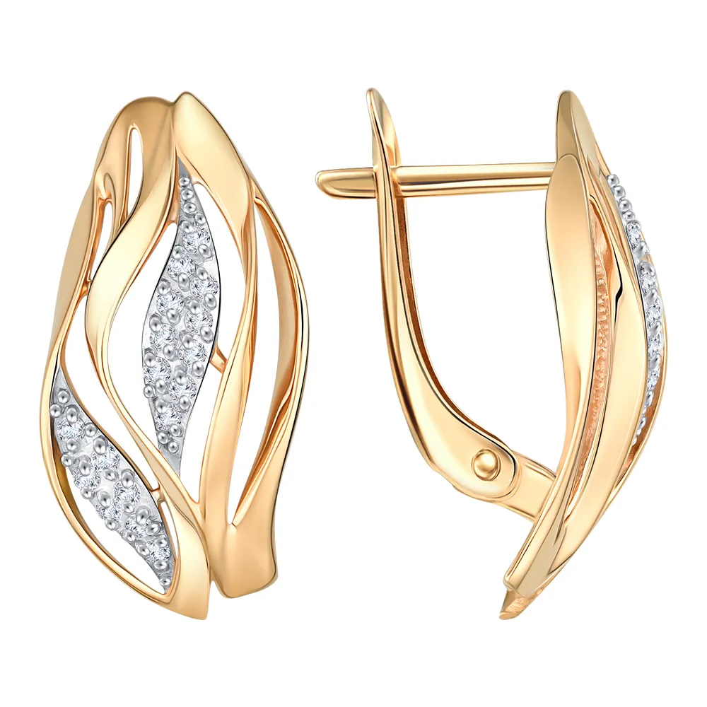 Серьги из красного золота с фианитами
