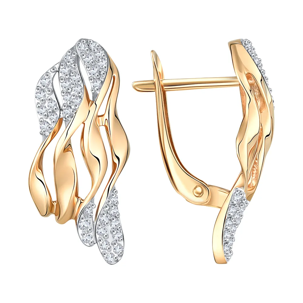 Серьги из красного золота с фианитами