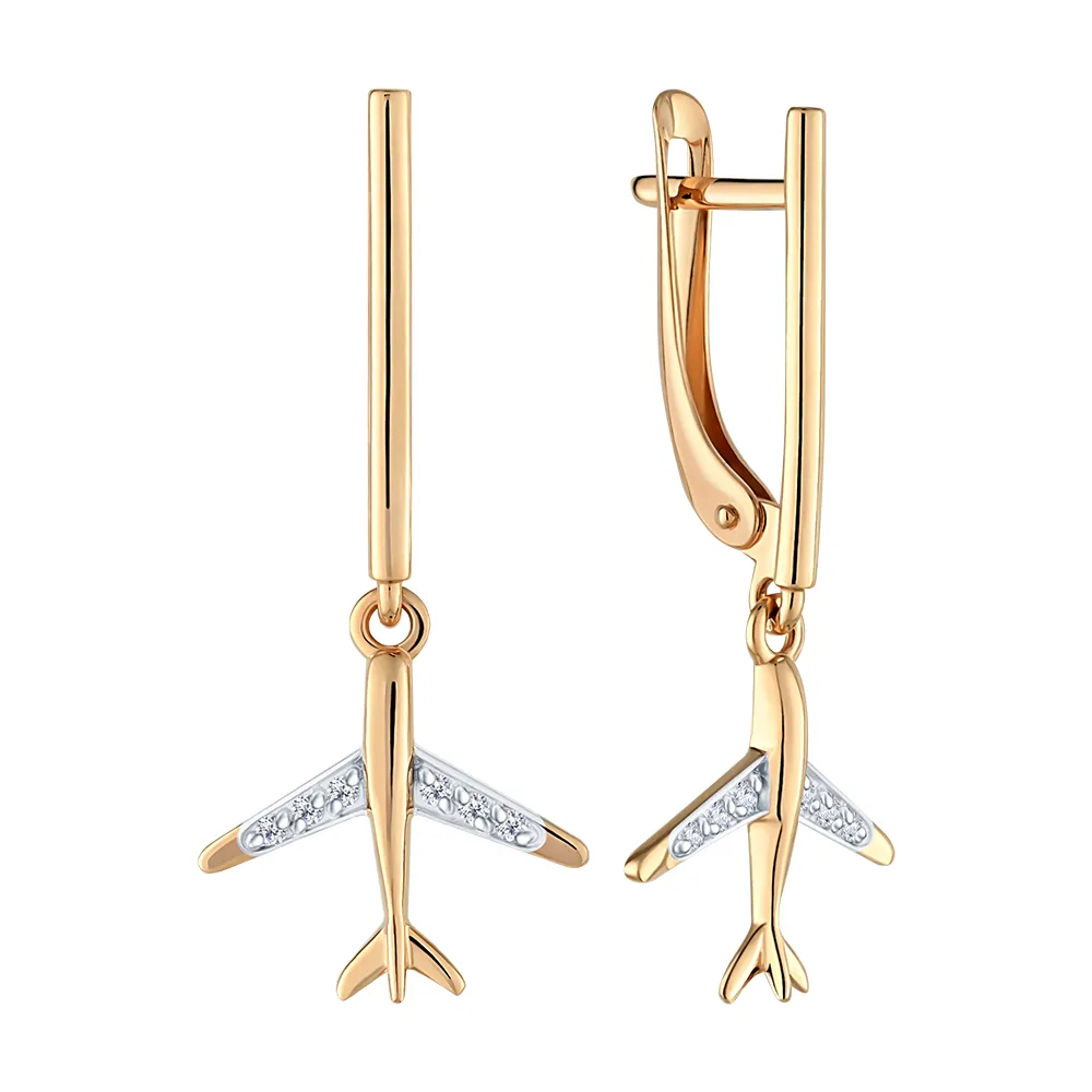 Серьги пусеты из красного золота с фианитами 024842-1102
