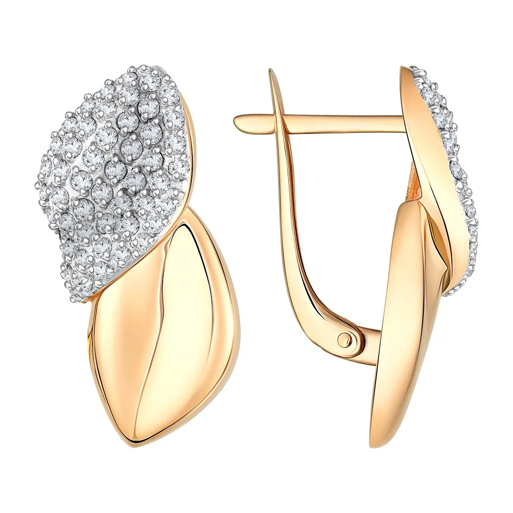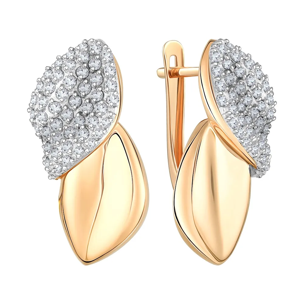 Серьги из красного золота с фианитами