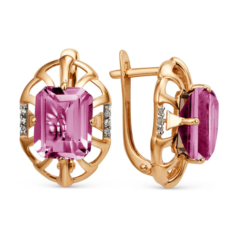 Серьги пусеты из красного золота с фианитами 024842-1102