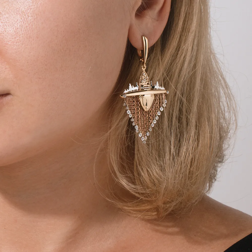 Серьги из красного золота с фианитами