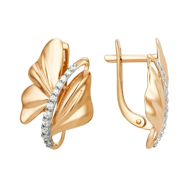 Серьги из красного золота с фианитами