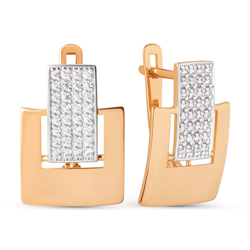 Серьги пусеты из красного золота с фианитами 024842-1102