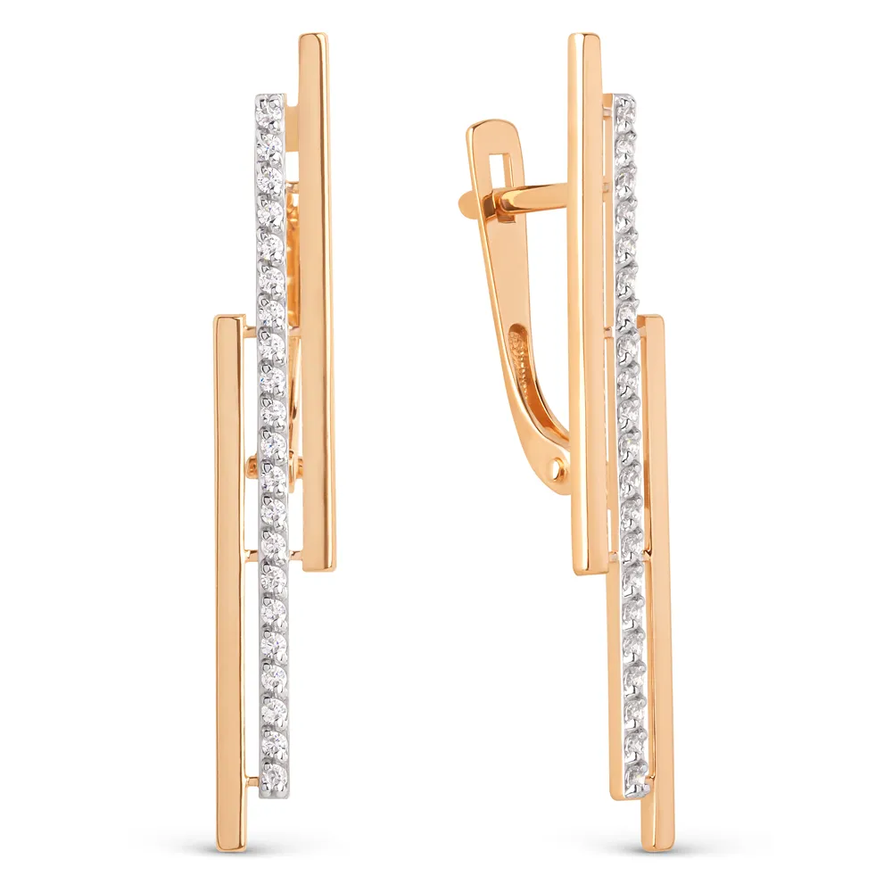 Серьги из красного золота с фианитами