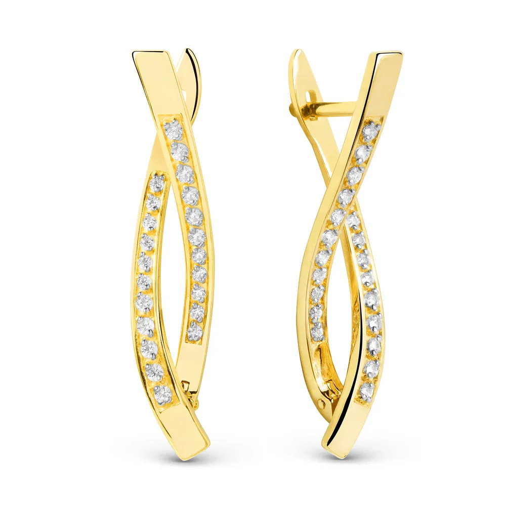Серьги из желтого золота с фианитами
