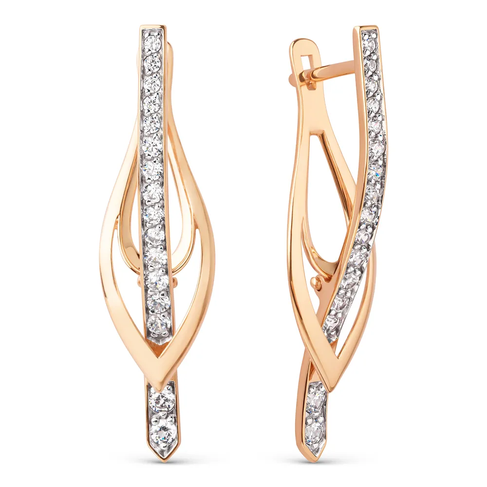 Серьги из красного золота с фианитами
