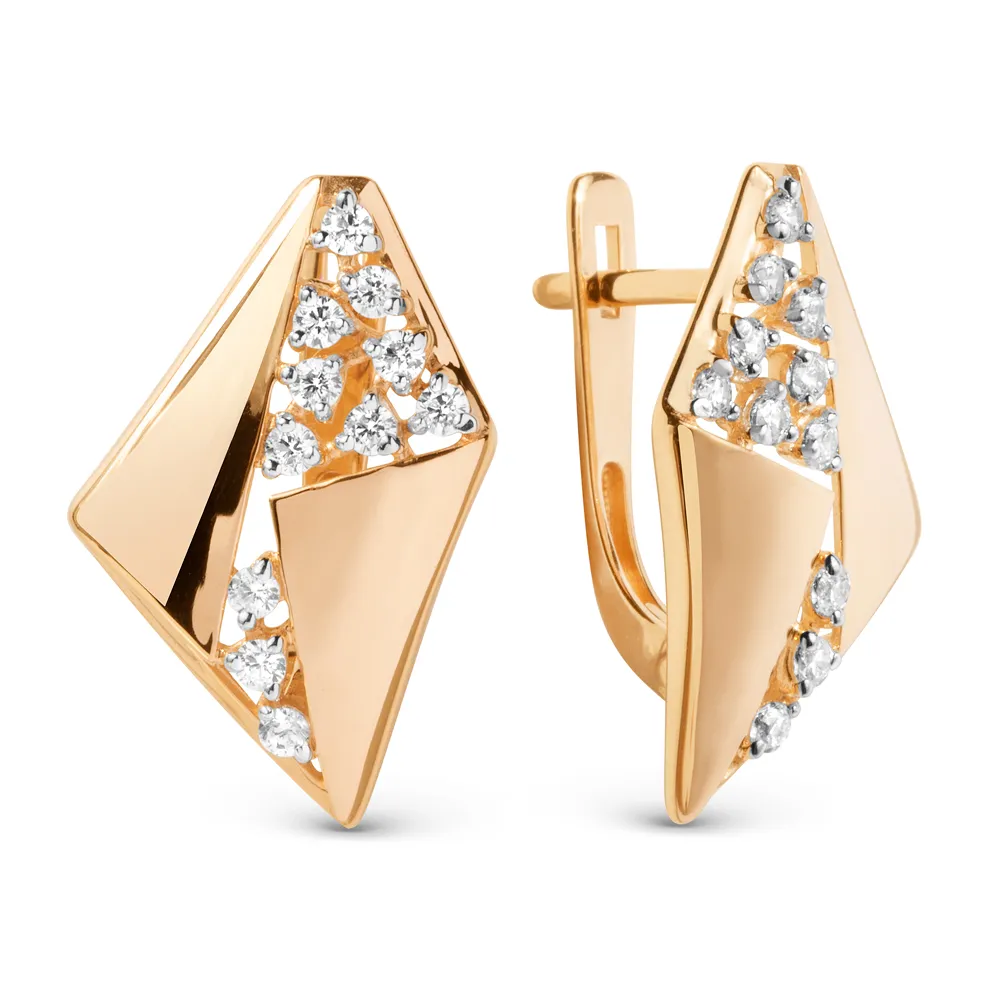Серьги из красного золота с фианитами