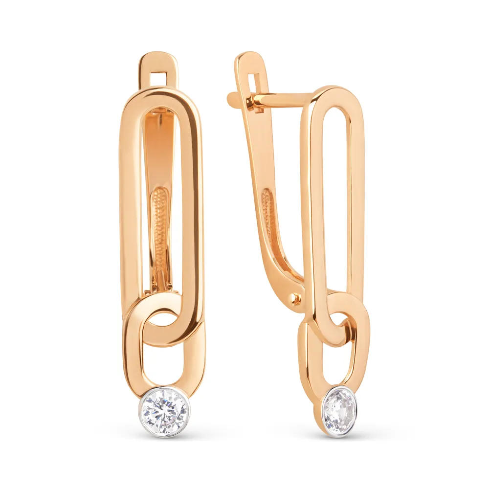 Серьги из красного золота с фианитами