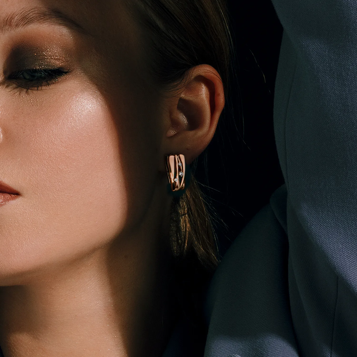 Серьги конго из красного золота
