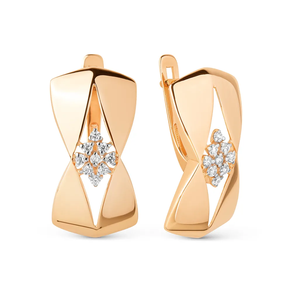 Серьги из красного золота с фианитами