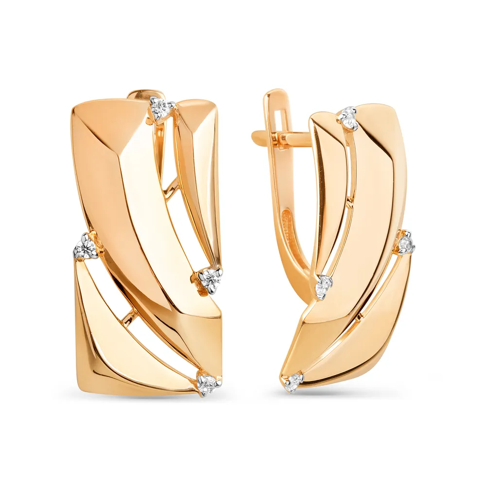 Серьги из красного золота с фианитами