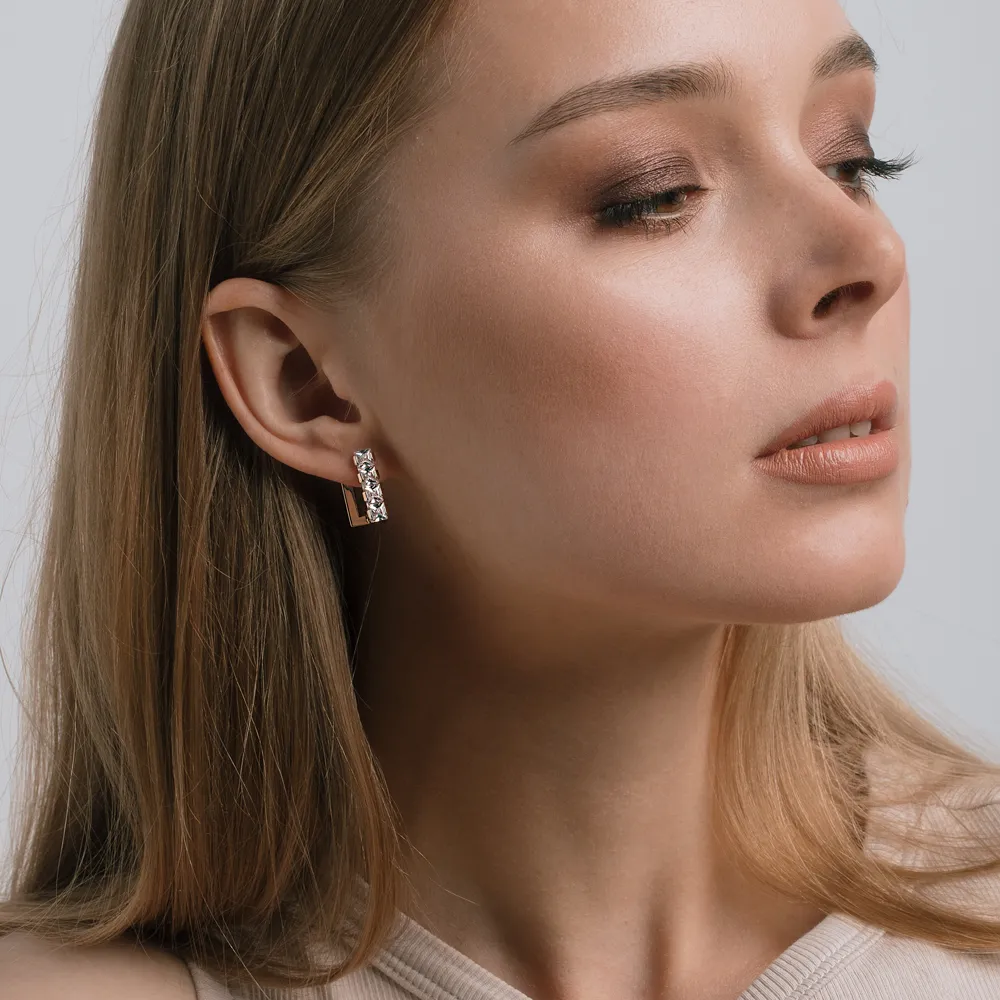 Серьги пусеты из красного золота с фианитами 024842-1102