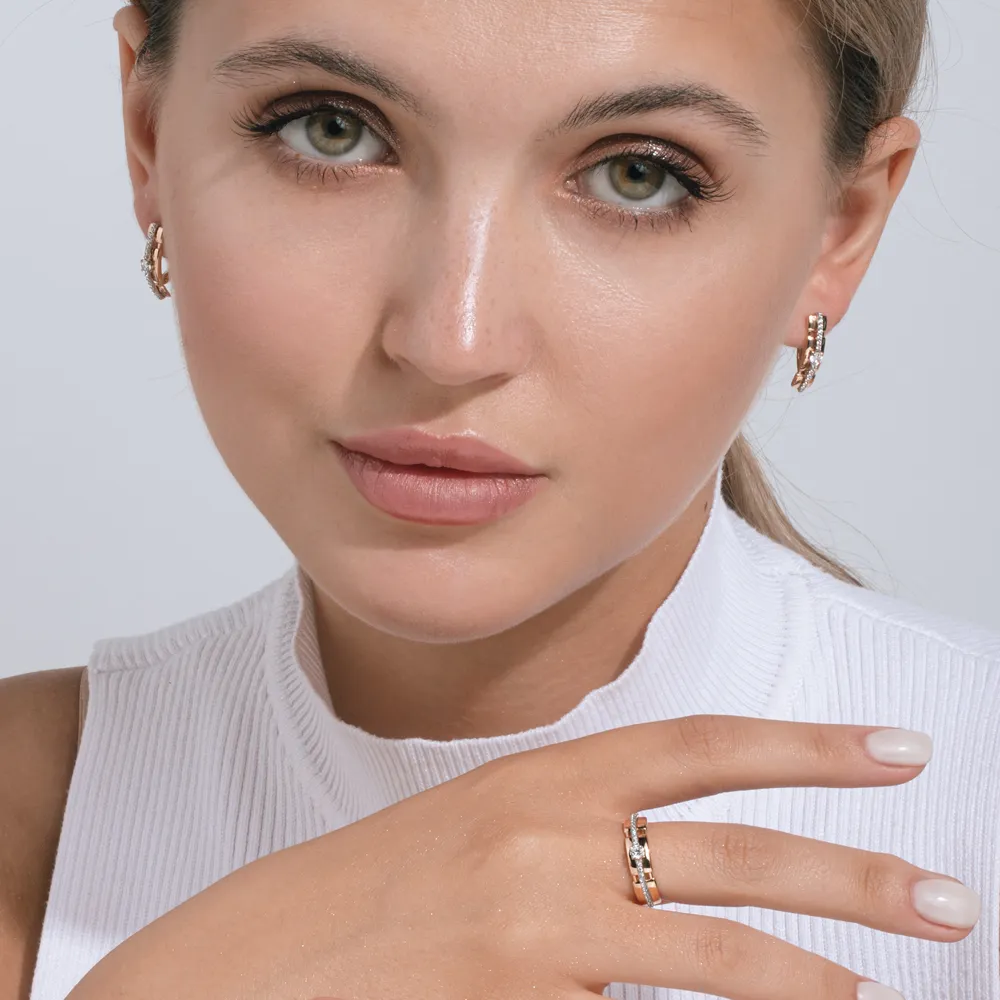 Кольцо из красного золота с фианитами