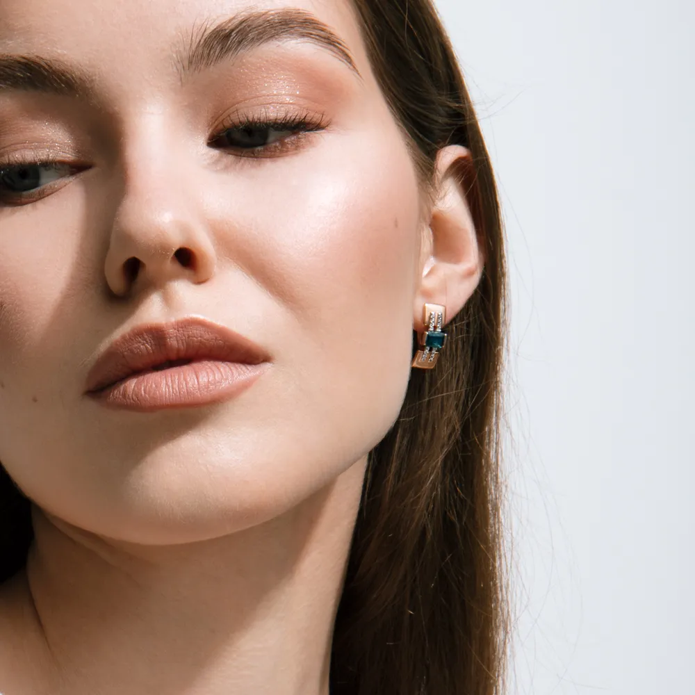 Серьги из красного золота с фианитами