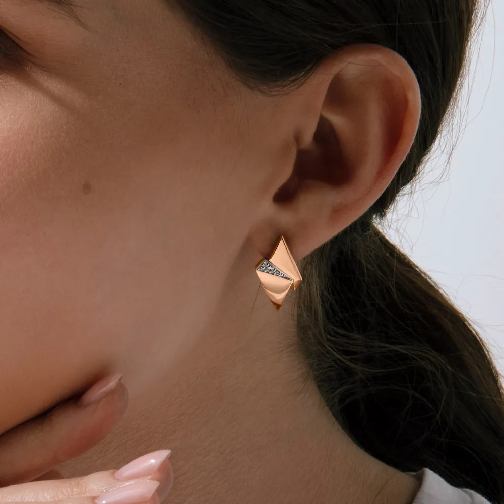 Серьги пусеты из красного золота с фианитами 024842-1102