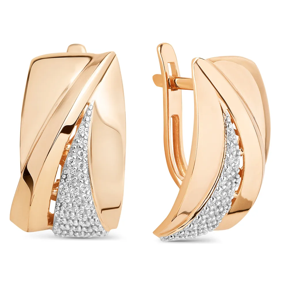 Серьги пусеты из красного золота с фианитами 024842-1102