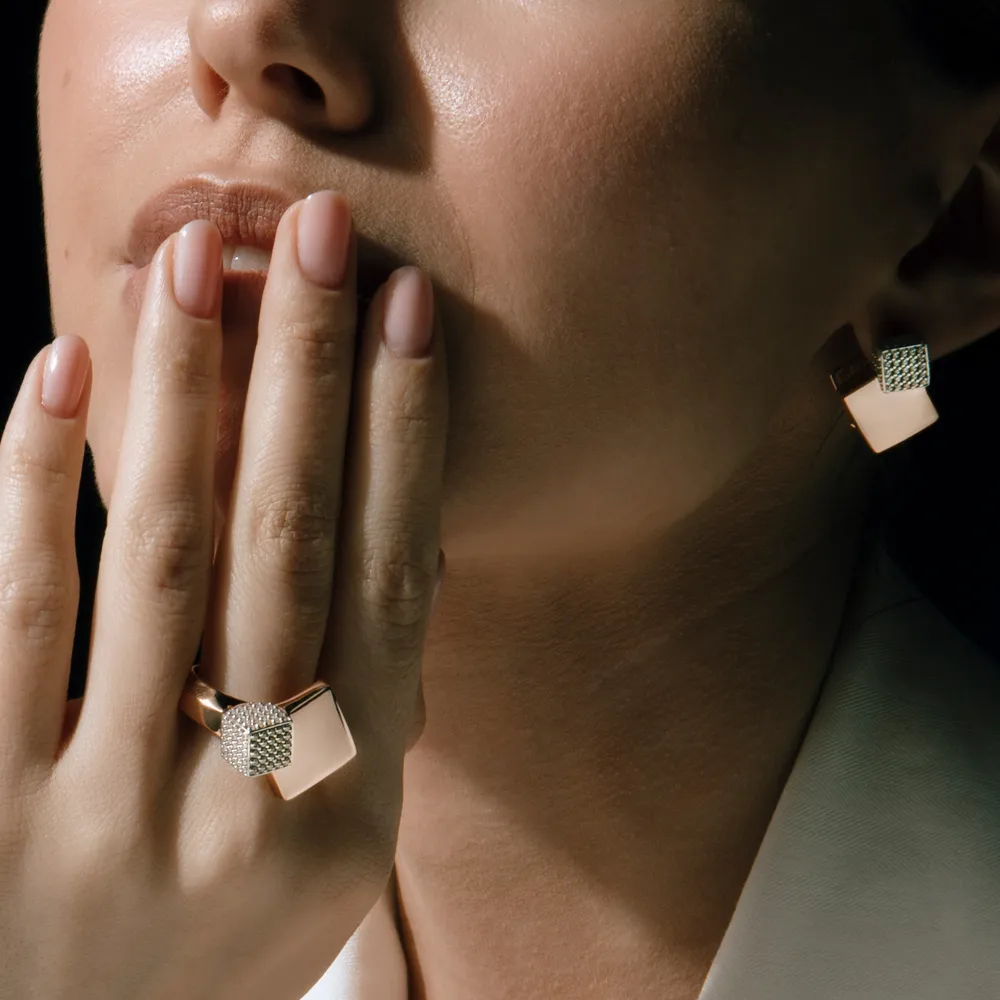 Кольцо печатка из красного золота с фианитами