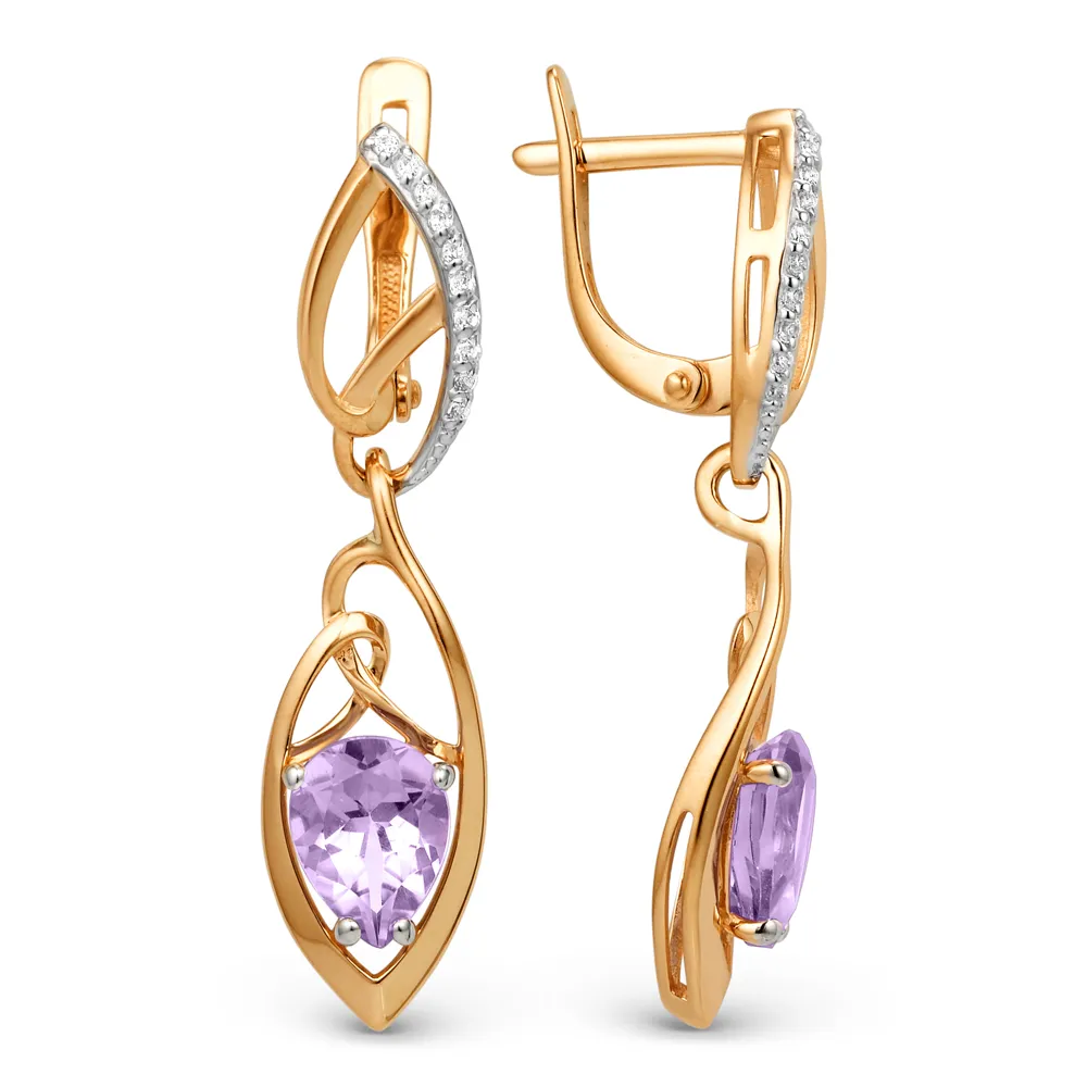 Серьги из красного золота с аметистами