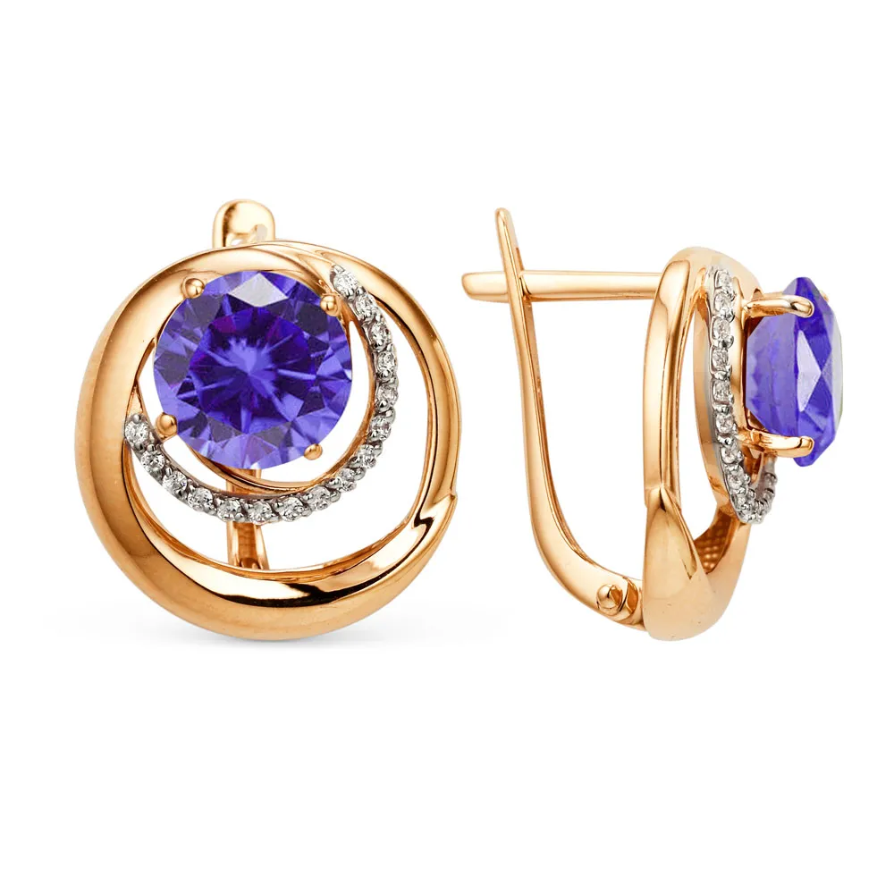 Серьги из красного золота с фианитами
