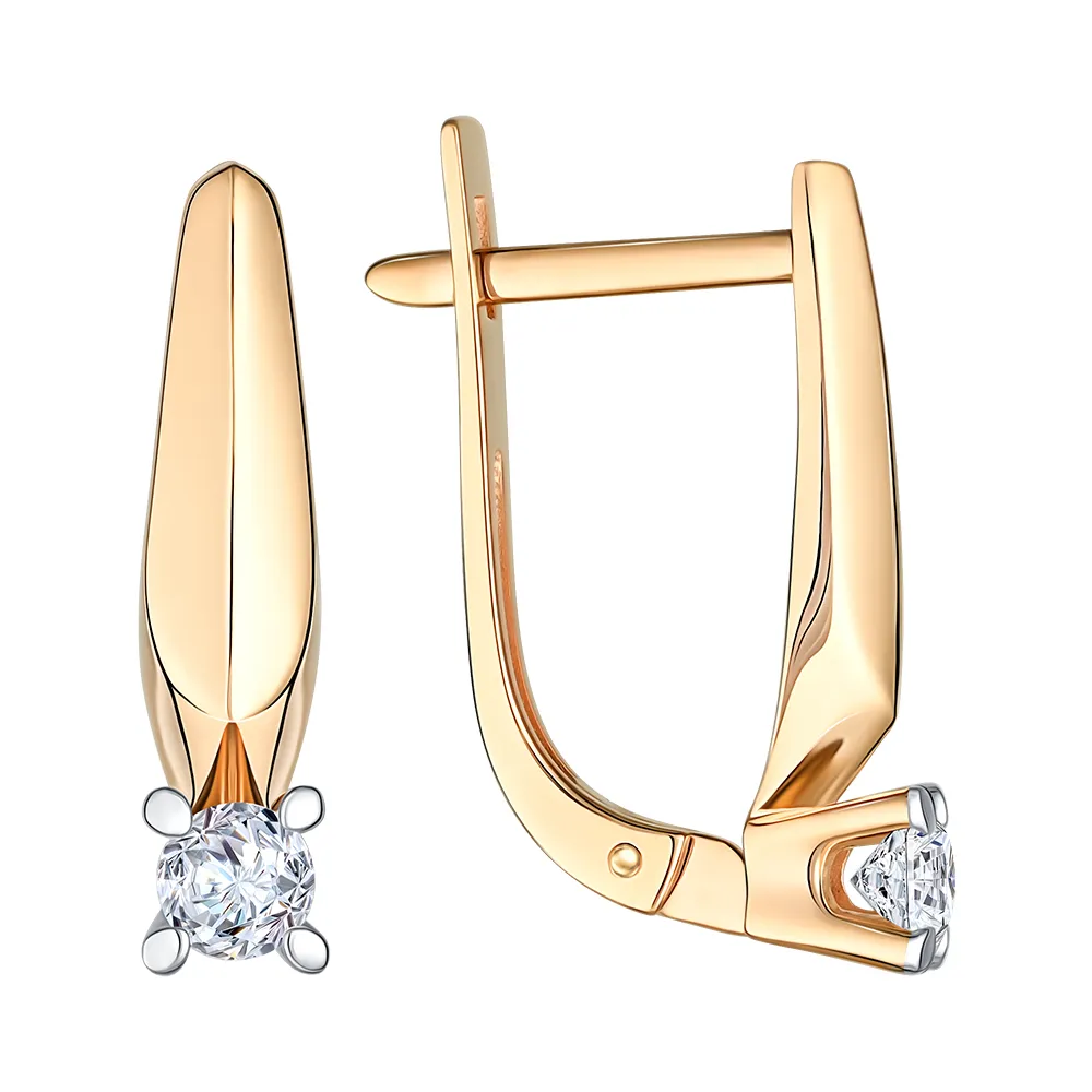 Серьги из красного золота с фианитами