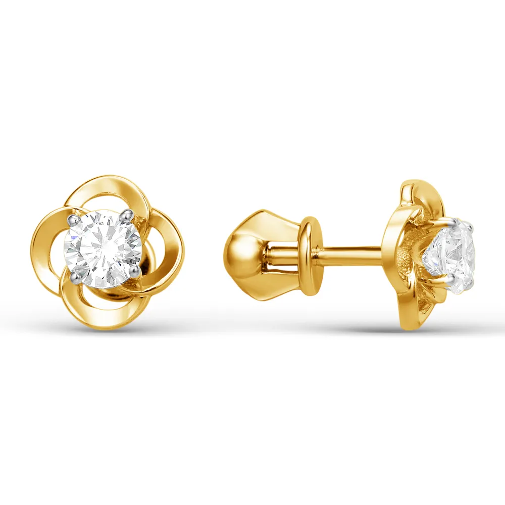 Серьги из желтого золота с фианитами
