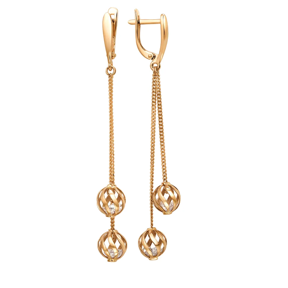 Серьги из красного золота с фианитами