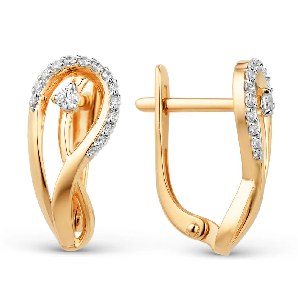 Серьги из красного золота с фианитами