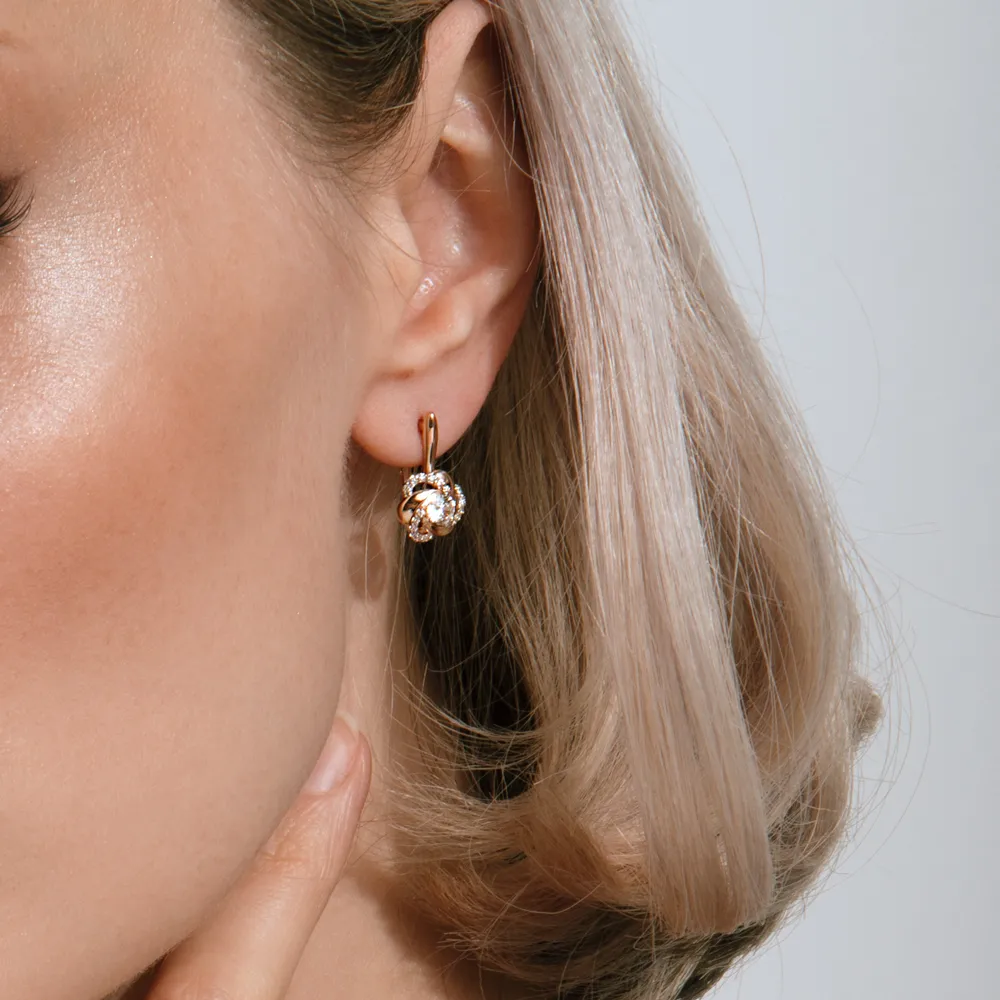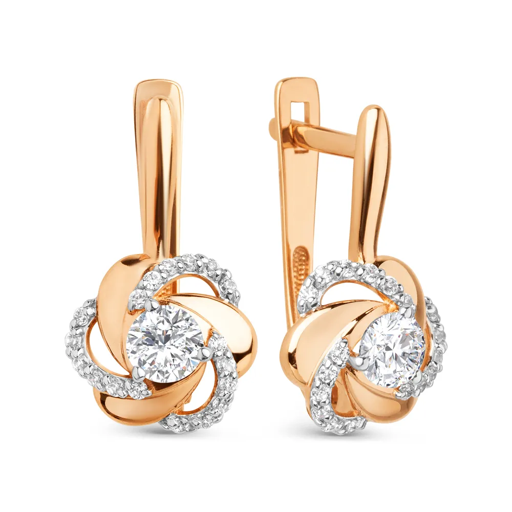 Серьги из красного золота с фианитами