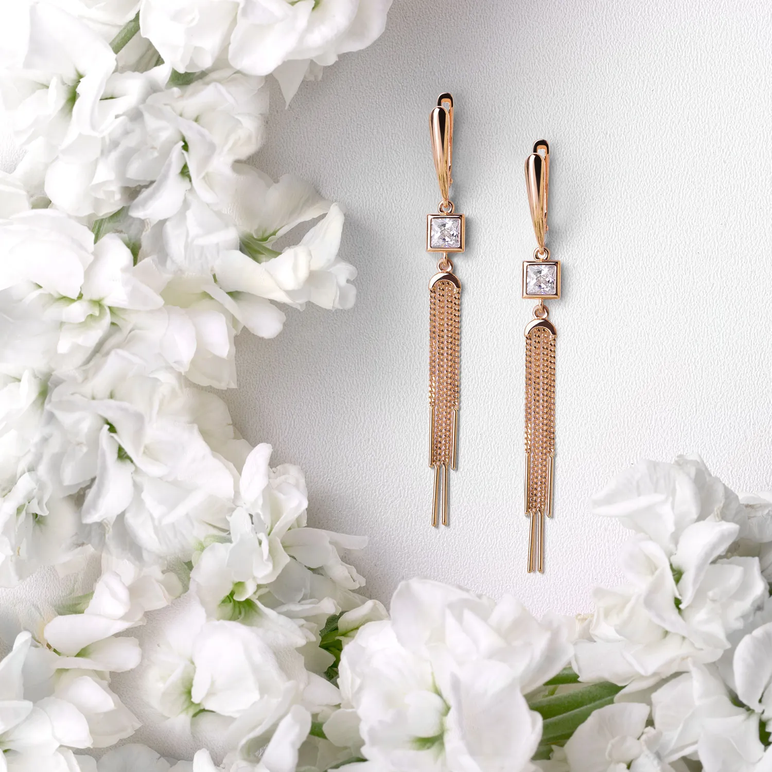 Серьги из красного золота с фианитами