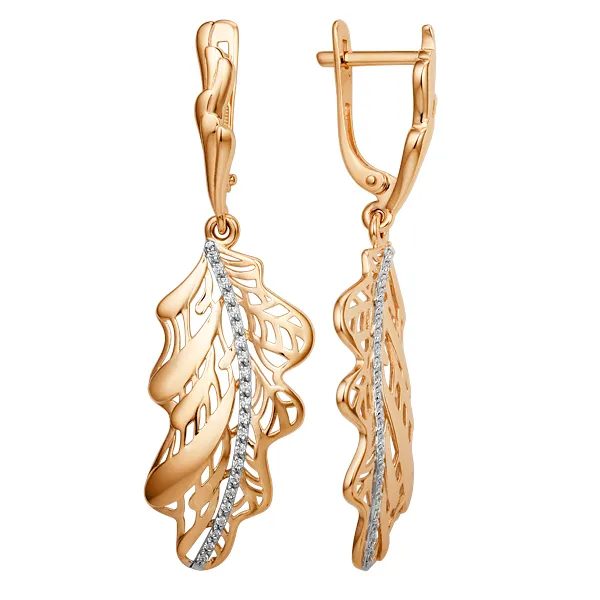 Серьги из красного золота с фианитами