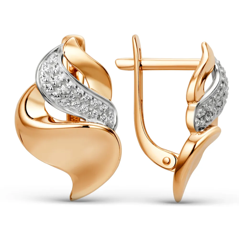 Серьги из красного золота с фианитами