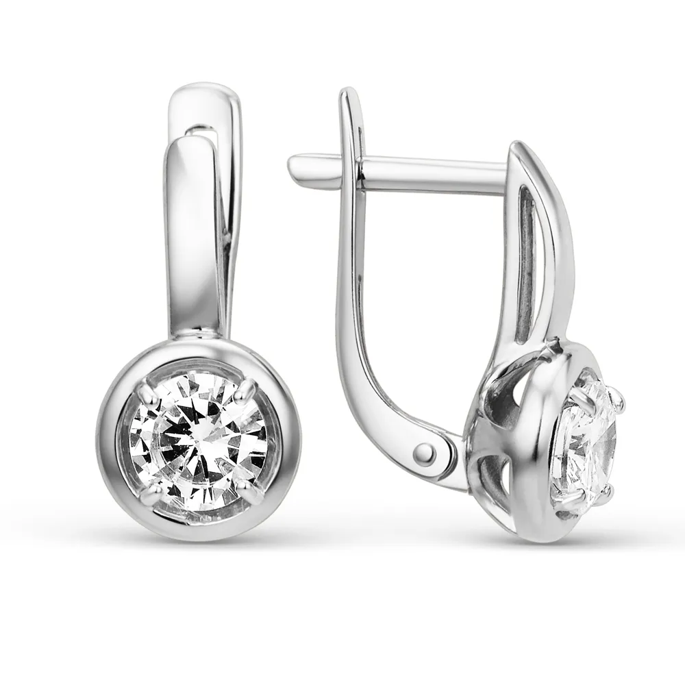 Серьги из белого золота с фианитами