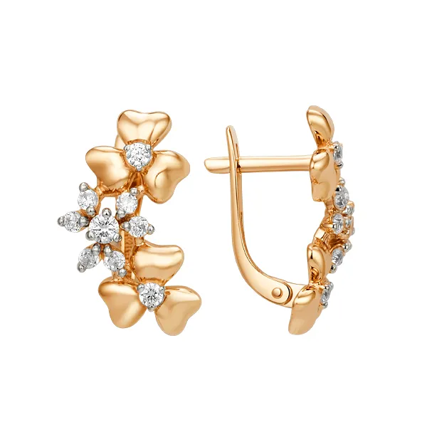 Серьги из красного золота с фианитами