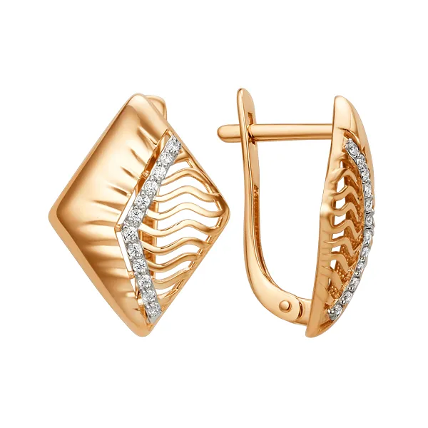 Серьги из красного золота с фианитами