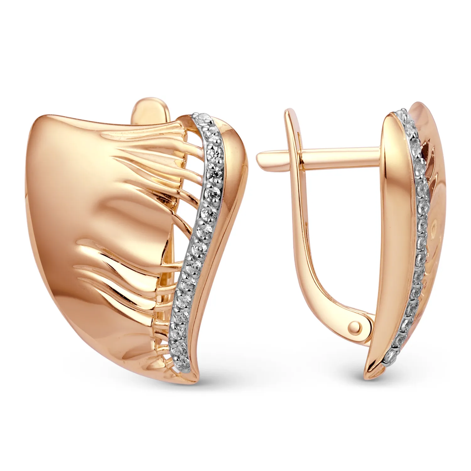 Серьги пусеты из красного золота с фианитами 024842-1102