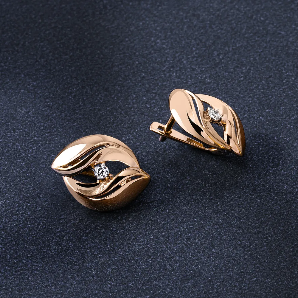 Серьги из красного золота с фианитами