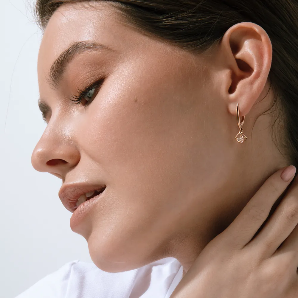 Серьги из красного золота с фианитами