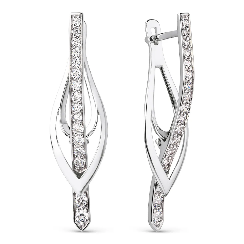 Серьги из белого золота с фианитами