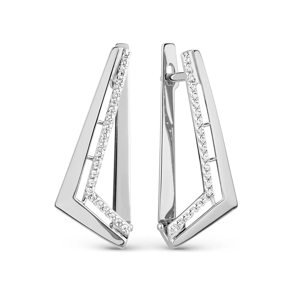 Серьги из белого золота с фианитами